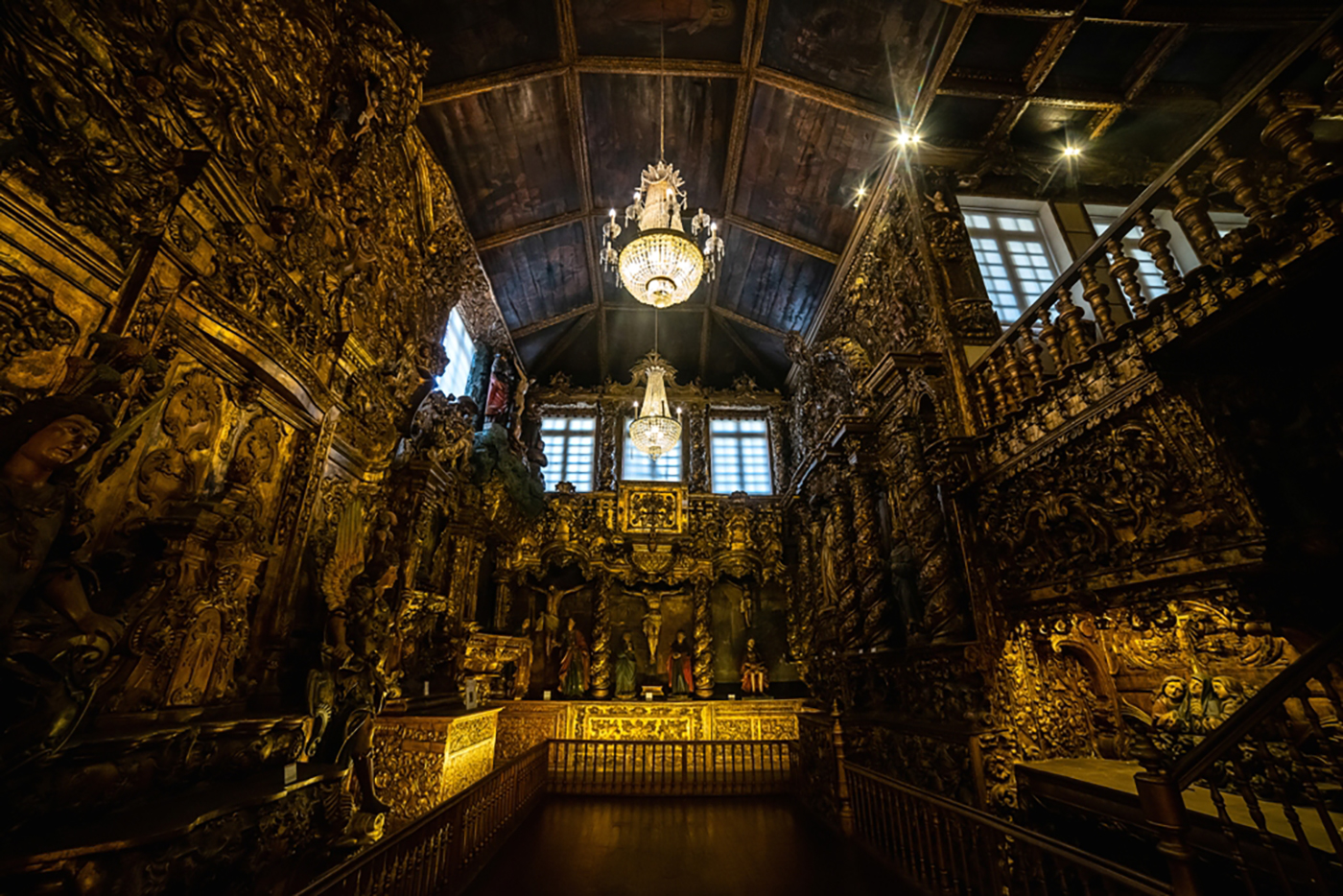 Tal como na “Sala da Capela” - a segunda do piso superior deste Museu – a Sala da Capela de Delães evoca em grande medida uma nova ambiência de “Capela” ilusória. Reinterpretando o Património religioso português reunido e atribuindo-lhe funcionalidade distinta da original, na sua cenografia, ao nível da Talha dourada esta sala conjuga um exemplar de “Retábulo e Altar-mor”, diversos “Retábulos e Altares laterais”, um pretenso “Coro-alto” e “Sanefas”. Aliás, a própria extensão decorativa do tecto caracteriza-se pelo seu conjunto uniforme de pinturas de caixotão com linguagem plástica equivalente e iconografias Cristológica e Mariana. No geral, esta Sala continha uma combinação estrutural e artística diversa na sua origem, mas passível de reproduzir uma “Capela” que nunca o foi.